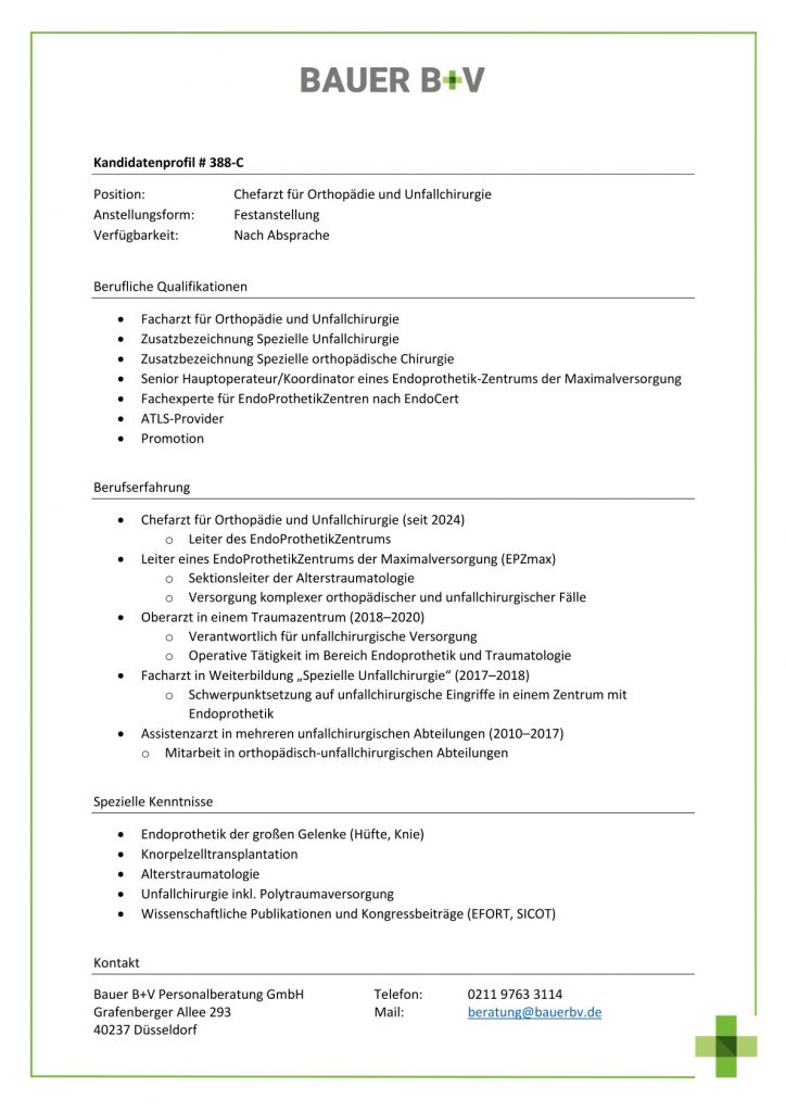 Chefarzt für Orthopädie und Unfallchirurgie [# 388-C]