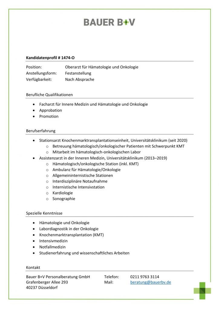 Download - Oberarzt für Hämatologie und Onkologie [# 1474-O] Facharzt für Innere Medizin Hämatologie Onkologie Approbation Promotion Stationsarzt Knochenmarktransplantationseinheit Universitätsklinikum seit Betreuung hämatologisch onkologischer Patienten mit Schwerpunkt KMT Mitarbeit im hämatologisch onkologischen Labor Assistenzarzt in der Inneren Medizin Universitätsklinikum Hämatologisch onkologische Station inkl KMT Ambulanz für Hämatologie Onkologie Allgemeininternistische Stationen Interdisziplinäre Notaufnahme Internistische Intensivstation Kardiologie Sonographie Hämatologie Onkologie Labordiagnostik in der Onkologie Knochenmarktransplantation KMT Intensivmedizin Notfallmedizin Studienerfahrung wissenschaftliches Arbeiten