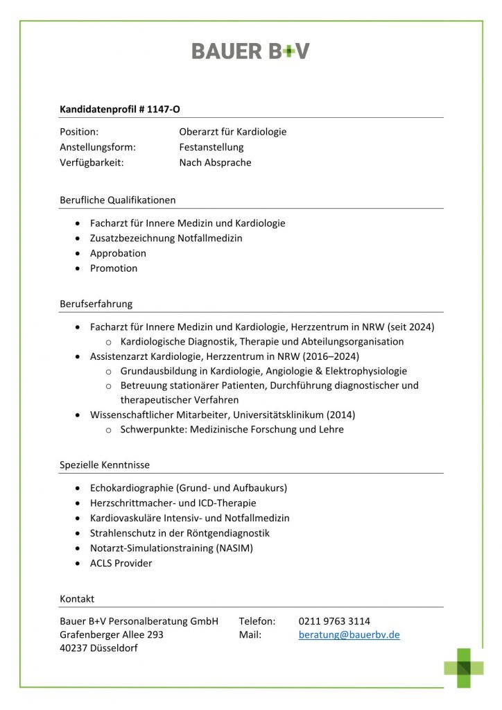 Oberarzt für Kardiologie [# 1147-O]
