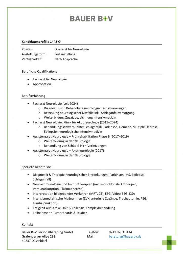Oberarzt für Neurologie [# 1448-O]