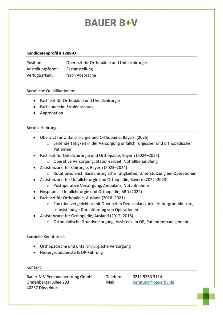 Oberarzt für Orthopädie und Unfallchirurgie [# 1288-O]